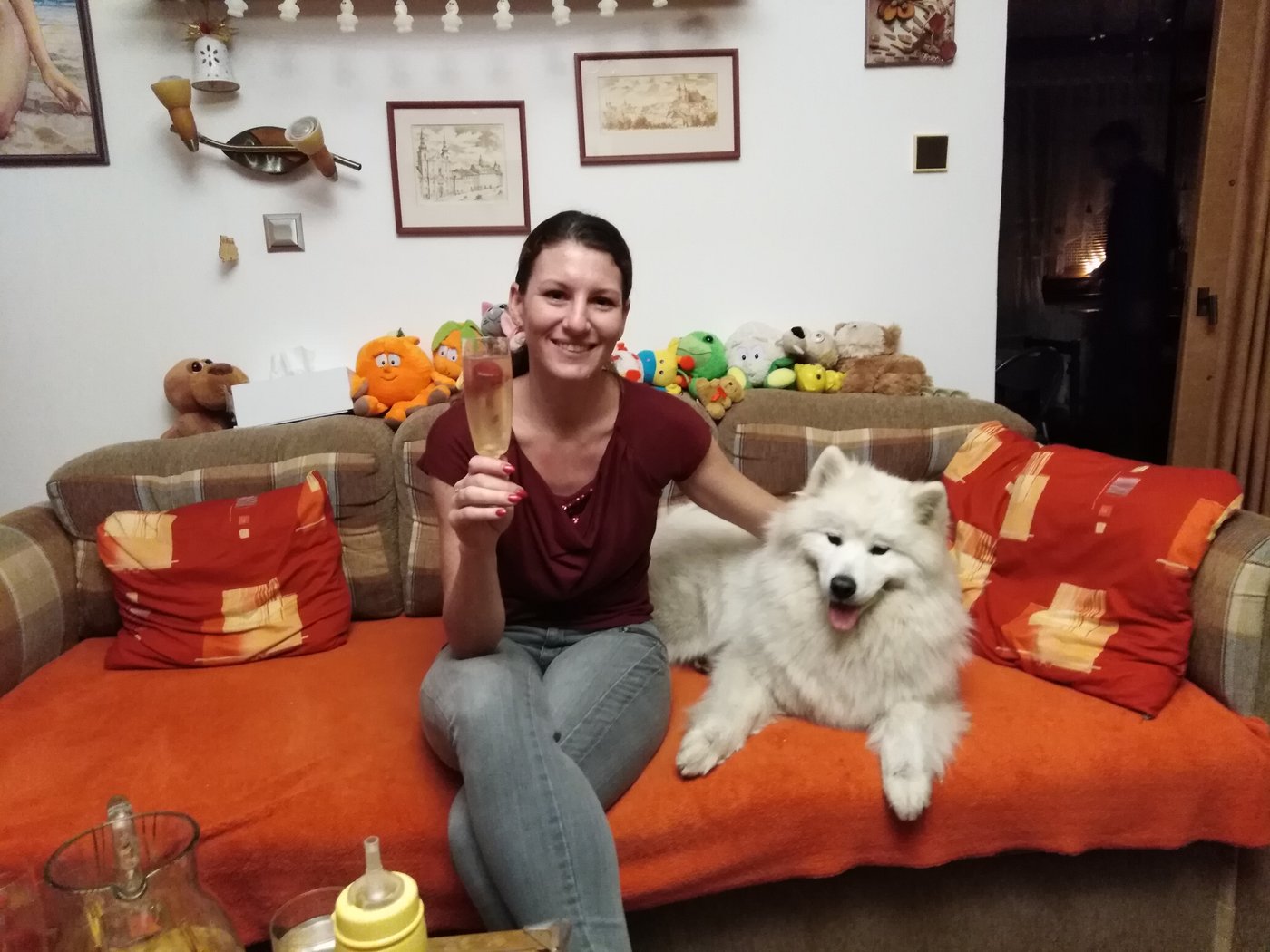 Jakmile jsem zjistila, že čekáme miminko, téměř okamžitě jsem se ptala manžela, kdy bude ten slíbený pejsek. Manžel usoudil, že se začneme po něčem poohlížet a uvidíme. Rovněž jsme přemýšleli, zda to má být pes nebo fena. Manžel byl spíše pro psa, já pro fenu, i když kdyby to byl pes, také by mi to nevadilo. Podívali jsme se na internet na inzeráty a měli jsme štěstí. Okamžitě jsme na jeden narazili. Přesvědčila jsem manžela, aby na inzerát zavolal a zjistil, zda jsou štěňátka volná. Souhlasil, že to zjistí. Jen konstatoval, že se jedná o pět fen. Zeptala jsem se: "A to vadí?" On se zamyslel a odpověděl, že vlastně ne. Navíc samojedí holčičky volné byly, a tak nám osud přivál do života chlupaté štěstí.