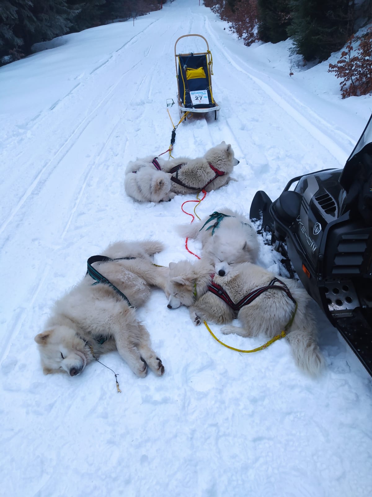Naše psí spřežení ve složení dvou fen (Airin Aika Lebaya Samoyed, Beauty Bayley Samoyed-devět mostů) a dvou psů (Xtra Xia Xixao Orleansnow, Akim Aik Artush Lebaya Samoyed) úspěšně dosáhlo cíle v třídenním 76km dlouhém etapovém závodě psích spřežení, který se konal v Zadově. Tím se všem členům spřežení podařilo splnit podmínky pro pracovní třídu v závodech na sněhu.