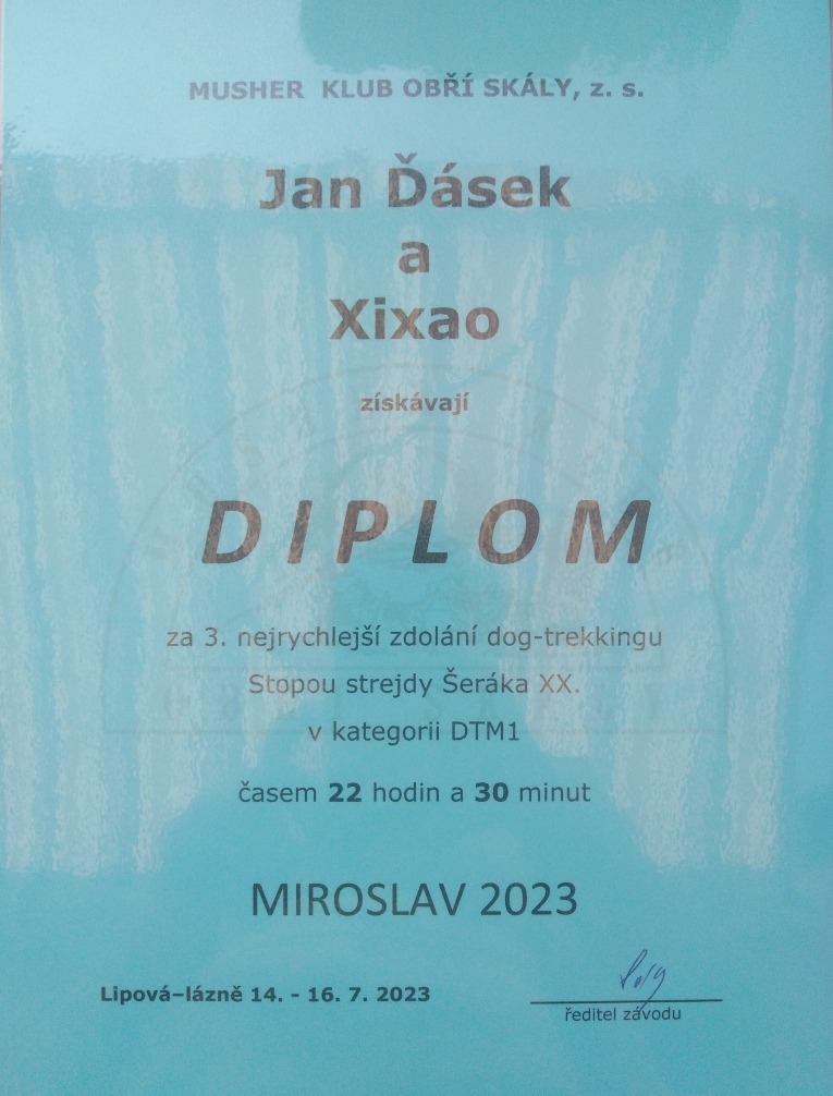 Naše psí spřežení se letos poprvé účastnilo extrémního závodu Šediváčkův long, který se konal 21. až 25.1.2025 v Orlických horách a to ve složení AIKA, DAFFY, XIXAO, COFFE, AKIM a DIONIS. Závod bohužel dokončit nezvládli a museli z něj pro únavu psů ve třetí nejtěžší etapě odstoupit. Přesto předvedli obdivuhodný výkon a zvládli odtahat a odšlapat 120km. Děkujeme všem, kteří naší smečce drželi palce. Získané zážitky a zkušenosti z tohoto závodu nás opět posouvají o podstatný kus dál a inspirují k dalšímu snažení.